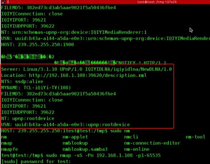 首先测试两台安卓设备,发现其中一台开放端口很多,隐隐约约中感觉是一台小米盒子或者百度影棒这种产品,这样事情就变得有趣了,因为控制电视可就有机会了。